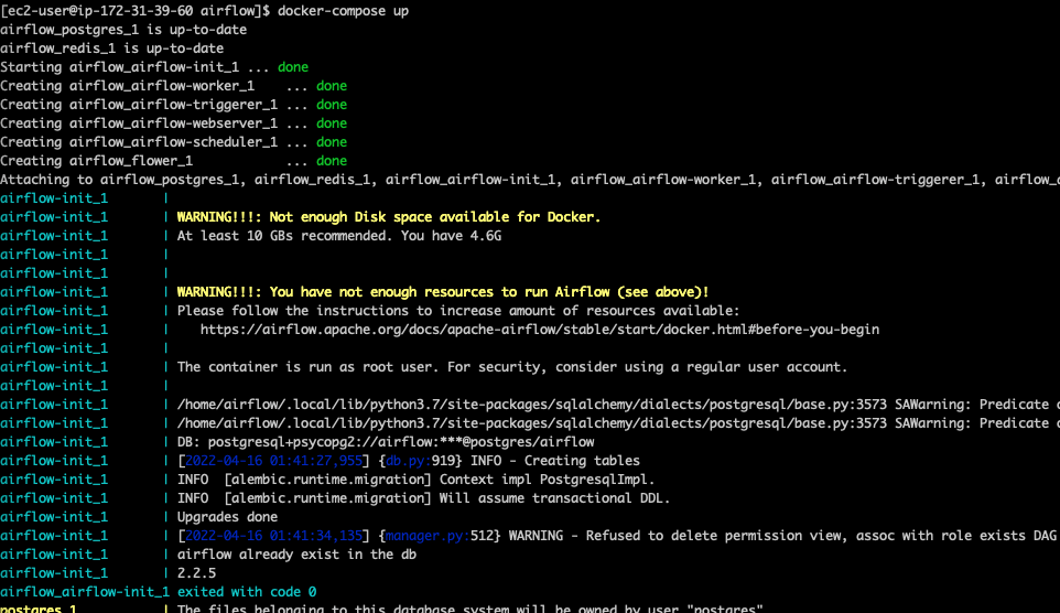 1e7f270f175f apache/airflow:2.2.5 "/usr/bin/dumb-init …" About a minute ago Up About a minute (healthy) 0.0.0.0:5555->5555/tcp, :::5555->5555/tcp, 8080/tcp airflow_flower_1