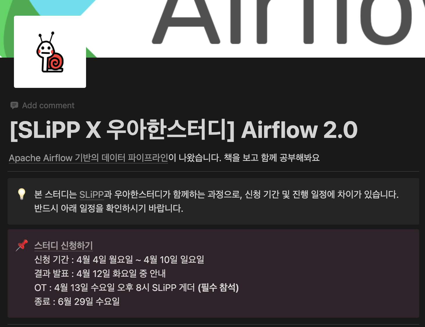 - airflow 스터디가 어떻게 진행되는지 궁금하신 분