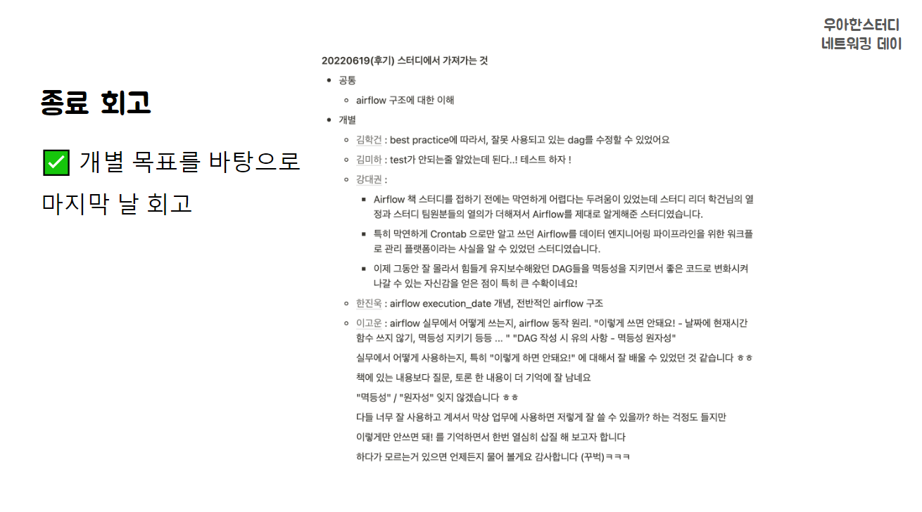 airflow 스터디가 끝나서 후기를 작성해보려고 해요 (MBTI 극J인 조장을 만나서 고생하신 팀원들께 다시 감사합니다) 3개월 동안 진행했던 'Airflow 2.0' 을 통해 얻은 것을 정리했어요 스터디를 통해