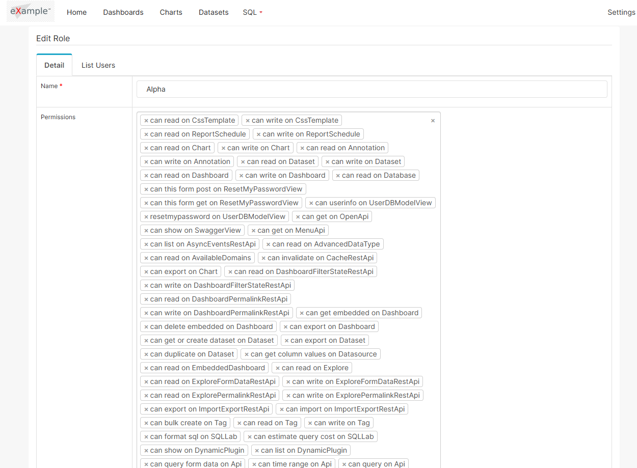 Superset에 기본적으로 정의되어 있는 Role은 다음과 같다. Role을 커스터마이징 할 수도 있지만 Superset에서는 기본 Role을 사용하는 것을 권장한다고 한다. Even though Admin users have the ability, we don't recomm