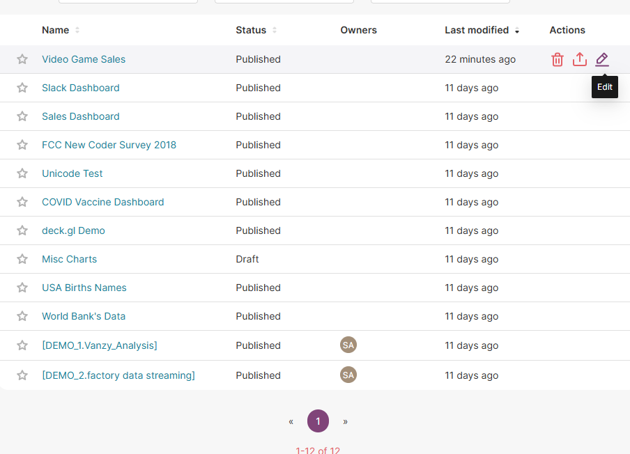 대시보드가 publish, draft인지에 따라서도 관리를 할 수 있어요