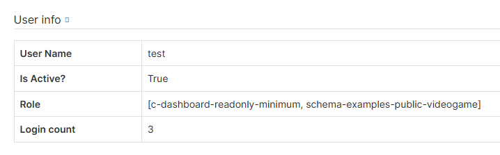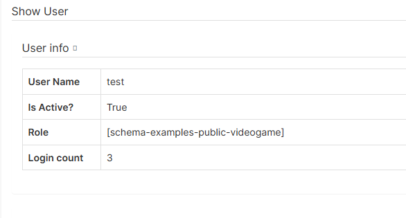 * EDIT > ROLES > 'schema-examples-public-videogame' 선택